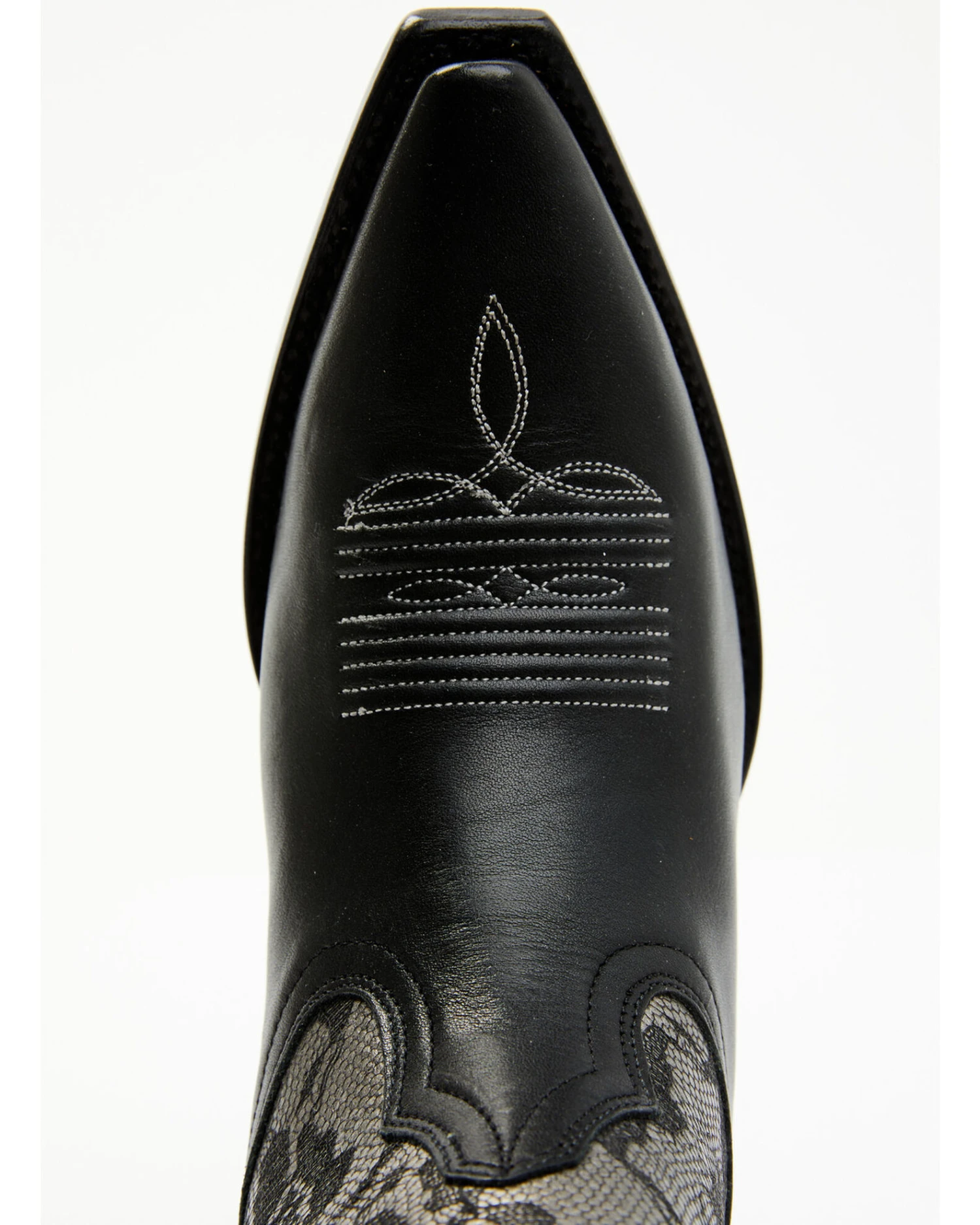 - Black leather vamp